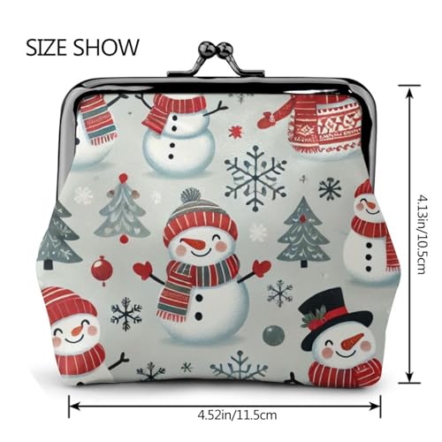 trending ! Pu Leather Buckle Coin Purse Snowflaks-Snowmen-Xmas Girls Kiss-Lock Change Purse Wallets