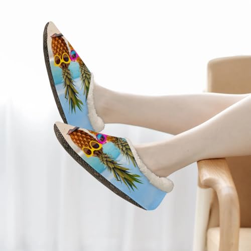 Summer Pineapple Family House Slippers for Women Men, Pineapple Beach Fuzzy silky Cozy Non Slip Slipper Socks