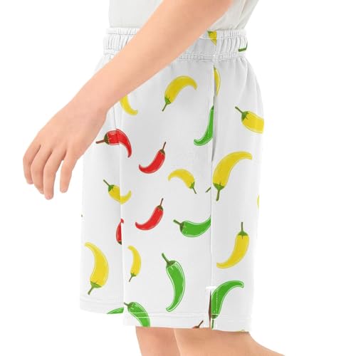 J JOYSAY Pepper Vegetable Scatter White Boys Athletic Shorts Kids Youth Casual Shotrs with Pockets Elastic Waistband