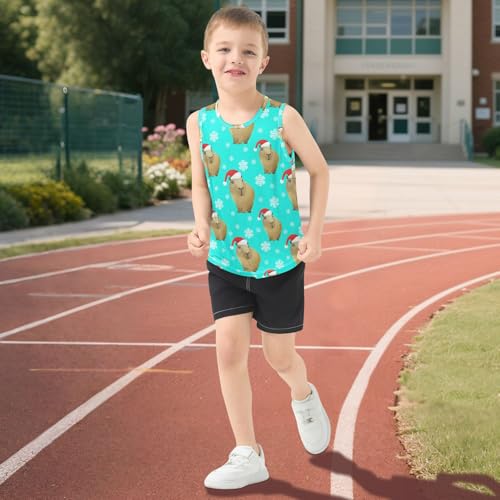 J JOYSAY Santa Capybara Snowflakes Teal Boys Tank Top Sleeveless Muscle Shirts prompt Dry Kids T-Shirts 3-15T