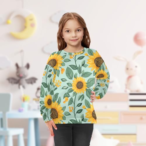 JUNZAN Cartoon Sunflowers Green Big Boys Hooded Sweatshirt Crewneck Hoodies for Girls Party 4T