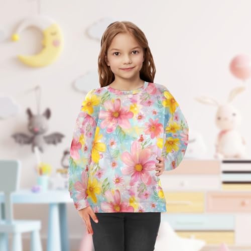 trending ! JUNZAN Watercolor Pink Yellow Flowers Big Girls Sweatshirt Hoodie Crewneck Kids Hoodies Boys Camping 4T