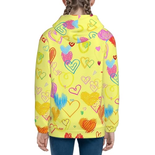 Hand Drawn Hearts Kids Pullover Hoodies Boys Zip Up Sweatshirts Girls Athletic Clothes with Pocket