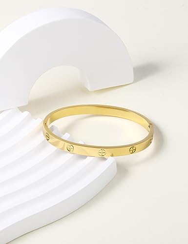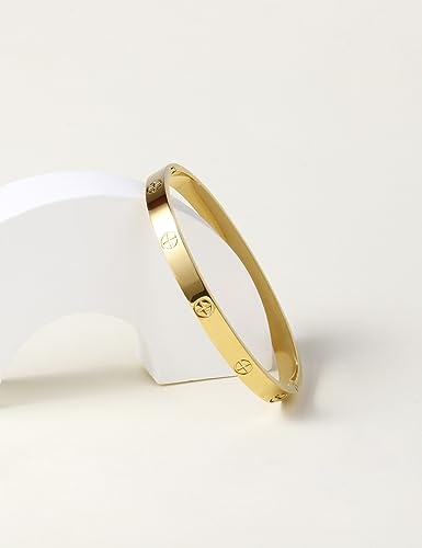 Gold Bangle Bracelets for Women 18K Gold Plated Stainless Steel cherish Bangle Bracelet for Women Men