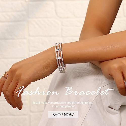 Rhinestone Bangle Bracelets Crystal Layered Cuff Bracelet Sparkle Tennis Stretch Bangles for Women
