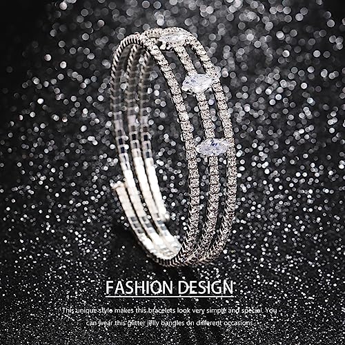Material: Silver, Rhinestone, CrystalMetal type: SilverClasp type: Lobster ClawChain type: Box ChainRhinestone cuff bracelet is made of rhinestones and alloy, making it snug to wear while adding a touch of that characteristic vintage look to your appearance.Sparkling bangles is about 2.3 inches/5.9 cm,please confirm your wrist size before buying.To ensure proper fit: Make fist and measure thickest part. TIP: Use string to wrap around your wrist, mark where the string meets, then lay on ruler.Bride crystal bracelets can as a gift for your sister,mother,daughter,wife,lover,female friend or for yourself on Christmas,Mother's Day,Valentine's Day,Thanksgiving Day,Birthday,Graduation,Party or other special events.Tennis cuff bracelet-you can wear this multi-layered bangles on different occasions, no matter shopping, working, wedding, holiday, party or dating, the glitter filled jelly bangle bracelets will catch most of eyes, you will get much compliments.Layering stretch bracelet can make you elegant ideal for matching different clothing well.You can wear it to beautify your overall look . Perfect for everyday use. superior materials and excellent craftsmanship ensure long-lasting durability.