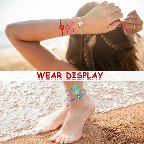 12 Pcs Flower Friendship Bracelets Handmade Colorful BFF Bracelet Set Cute Daisy Adjustable Wrist Cord Jewelry for Women Friend Couples Partner