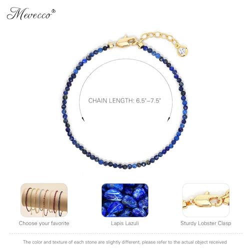 Metal type: BrassGem type: No gemstoneItem type name: BraceletsLapis Lazuli Bracelet Size: 6.5 - 7.5 long adjustable chain with lobster claspMaterial: Our gemstone beaded chain link bracelet crafted in 18K gold plated, heat and pressure bonded to a high-quality brass core; being absolutely stunning, comfortable for everyday wearDesign: Eye-catching and elegant, this delicate handmade bracelet is made from lapis lazuli gemstones. More than just a bracelet, it’s a symbol of energy –release stress and enjoy lifeMade With Love: Each stone exhibits variations in its color and texture, making each bracelet exclusive and a ideal gift for mom or grandma on mother's Day, birthday, or wedding celebration. Makes a sentimental surprise for any awesome ladyAbout MEVECCO Jewelry: To create modern,minimal and easy going personalized jewelry! handmade and engraved personal pieces,as well as delicate dainty jewelry and layered combos which create the perfect individual look Perfect for everyday use. superior materials and excellent craftsmanship ensure long-lasting durability.