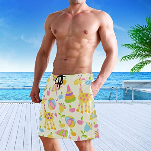 visesunny Cute Giraffe Planet Flower Summer Men's Swim Trunks rapid Dry Bathing Suits Beach Swim Shorts