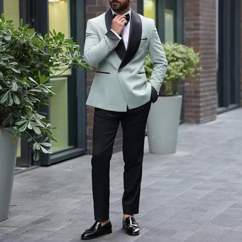 trending ! Men's Slim Fit 2 Piece Suit Set,Double Breasted Blazer Jacket Pants Tuxedo Set for Prom Wedding and Business
