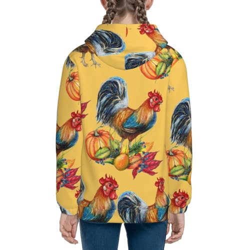Watercolor Rooster Kids Pullover Hoodies Boys Zip Up Sweatshirts Girls Athletic Clothes with Pocket