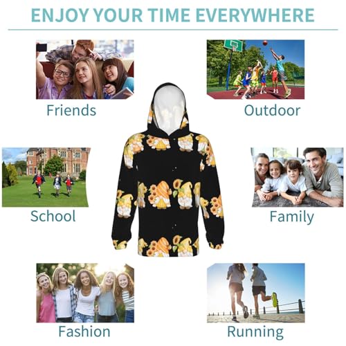 Hello Spring Sunflower Gnomes Kids Pullover Hoodies Boys Sweatshirts Girls Athletic Clothes with Pocket