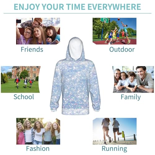 trending ! White Bule Glitter Kid Hoodies Boys Sweatshirts Girls Pullover with Pocket