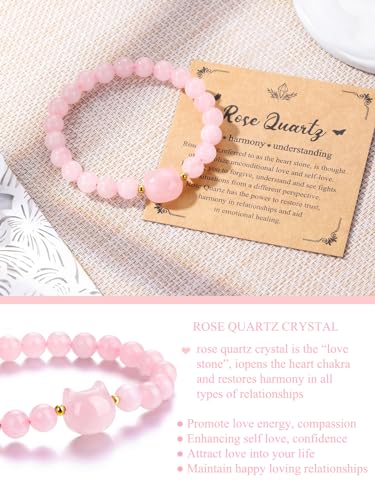 Material: CrystalMetal type: No Metal TypeClasp type: Lobster ClawChain type: Bead ChainGem type: QuartzBrief content visible, double tap to read full content. Full content visible, double tap to read brief content. Bundles with this item Previous page Rose Quartz Crystal Cat Bracelet and Cat Figurine -9% $20.99 Was: $22.98 Rose Quartz Crystal Cat Bracelet and Cat Figurine -9% $20.99 Was: $22.98 Rose Quartz Crystal Cat Bracelet and Cat Figurine -12% $20.99 Was: $23.98 Next page See all bundles😸Lucky Crystal Cat Bracelet: little cute cat charm with natural 8mm crystal stone bead stretch bracelet, sturdy and fashion crystal gemstone bracelets suitable for both women and men. Fortune cat lucky cat charm is a talisman that is believed to attract money, good luck and fortune for its owners, perfect crystal gifts for women menRose Quartz Bracelet: rose quartz crystal is the “love stone”, rose quartz opens the heart chakra and restores peace and harmony in all types of relationships. Wearing rose quartz bracelet can promotes unconditional love, forgiveness, peace and compassion, enhancing self love, self trust, self worth and self confidence. It can be used to attract love into your life and maintain happy loving relationshipsGifts For Women Men: good luck crystal cat bracelets gifts for women, men,mom, wife, daughter, girlfriend, grandma, sister, friendship bracelet gift, business partner, coworker, Christmas gifts, Birthday gifts, Mother’s day gifts from son daughter, Valentine’s day gifts for her, Anniversary gift, new year gifts and more!snug Crystal Anxiety Bracelet: this stretch bracelet is sturdy and durable, 6.5-7 inches length; suitable for most people wrist, comfortable to wear. Bead size: 8mm; cat charm: 0.59 inchesPlease Note: due to the nature of gemstone , carving may slightly vary in size, color and shape of this gemstone bead bracelet. If you have any question about healing crystals bracelet purchased, welcome to contact with us, you will get reply within 24 hours Perfect for everyday use. superior materials and excellent craftsmanship ensure long-lasting durability.