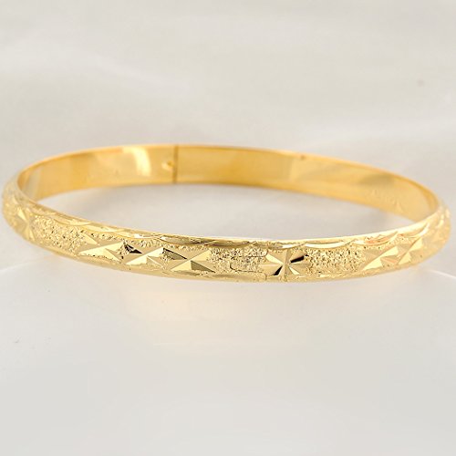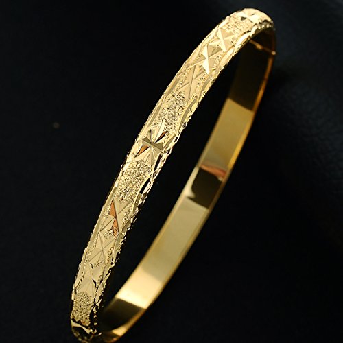 Material: MetalMetal type: Gold-plated-copperClasp type: BuckleChain type: Box ChainGem type: Cubic ZirconiaUnique Design:Handcarved Star Pattern Openable Design bangle with Hidden buckle, Elegance looking will catch everyone's eyes.High polished to comfortable Wearing, Fit Almost Usual Wrist Size.Material:Plated in Genuine 18K Yellow Gold .Wonβt rust, tarnish or discolor skin.Size:Inner Dia. 65mm (2.56),width: 6mm (0.24) Weight:28g Fit for: mom/mother/grandmother/teens/bride /bridesmaid /girlfriend giftetcPerfect Jewelry:Can be sent and worn on:Mother's Day, Birthday, Holiday, Anniversary Day,and School day, wedding, birthday party, prom or pageant,Christmas Day,Thanksgiving Day,Valentine's Day,Women's Day,Fool's Day,Easter Day,Labour Day,Bamadan Day,Children's Day,Father's Day,Teacher's Day,Pumpkin Day,Halloween,Hallowmas,Nurse Day,Boxing Day. This type of elegant bracelet will decorate your exquisite mood and attract great attentions.Packing:Come with Advanced customization Kugoa jewelry gift box .No lead Nicke,and 90-Day money back guarantee or exchange. Perfect for everyday use. superior materials and excellent craftsmanship ensure long-lasting durability.