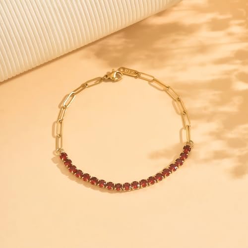 More information about Tennis Bracelet for Women 5.9-7.9 Inch,18K Gold Plated 4mm CZ, Adjustable Half CZ Half Paperclip Chain Link Bracelet,Rainbow Cubic Zirconia Trendy Boho Jewelry