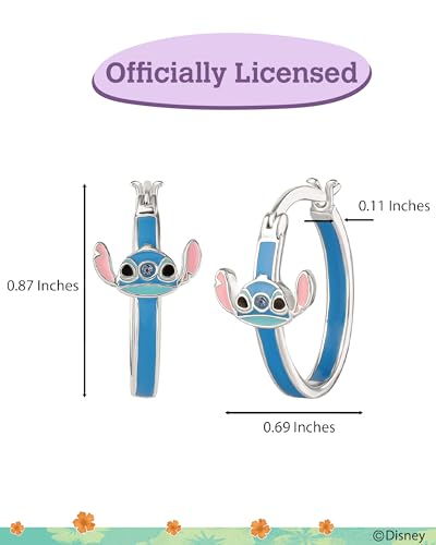 Disney Women’s Lilo and Stitch Hoop Earrings – Officially Licensed Jewelry Silver Flash-Plated Enamel and Crystal