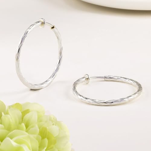 trending ! Clip On Hoop Earrings For Women No Piercing Earrrings Spring Hoops for Non-Pierced Ears Grey Tone 4CM/1.57" 5CM/1.96" 6CM/2.36"