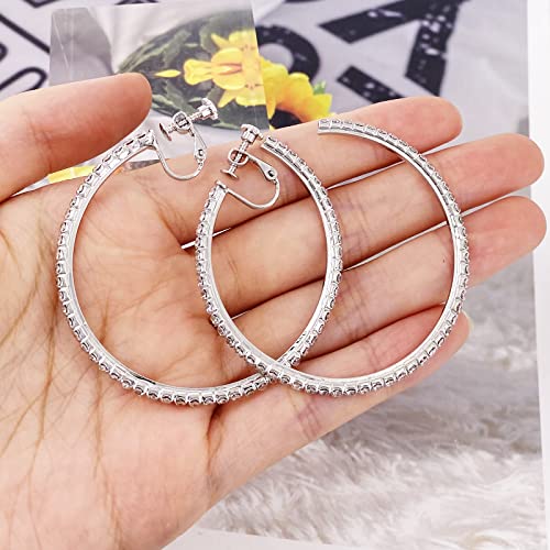 More information about LAXPICOL Fashion Sparkly Austrian Circle Hoop Earrings Clip On Earrings For Women No Piercing Earrrings