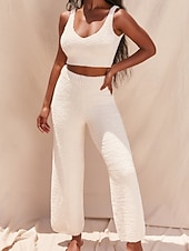 This Women's Active Streetwear Pants Sets Bolero Top Sleeveless V Neck Plain Outdoor Vacation Daily White Pink Blue Fall Regular Fit combines elegant design with practical functionality. Every detail has been carefully considered to ensure you get the premier possible experience. The first-class construction means this product will serve you well for years to come.