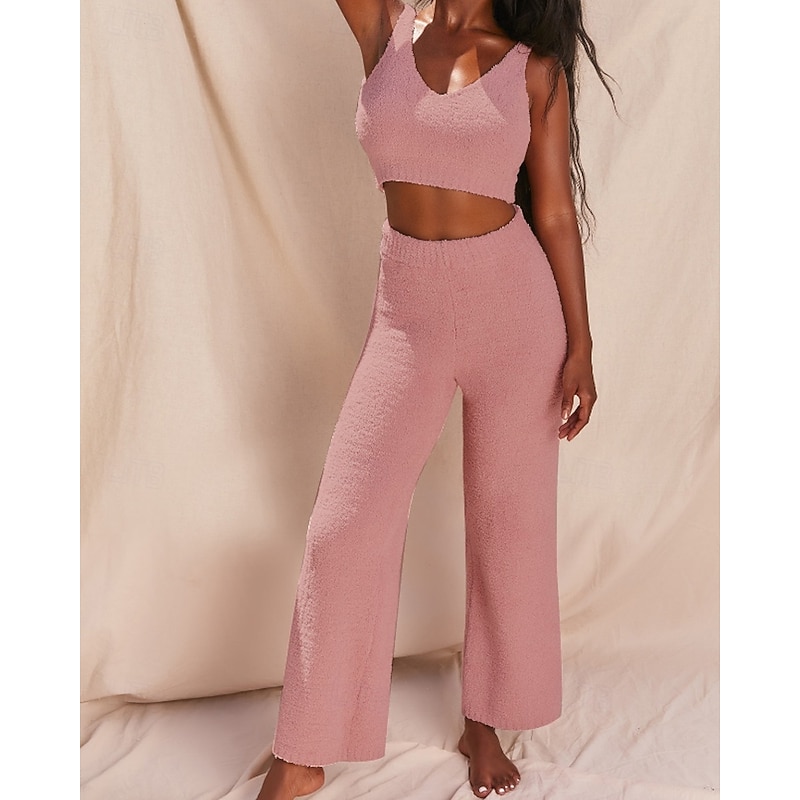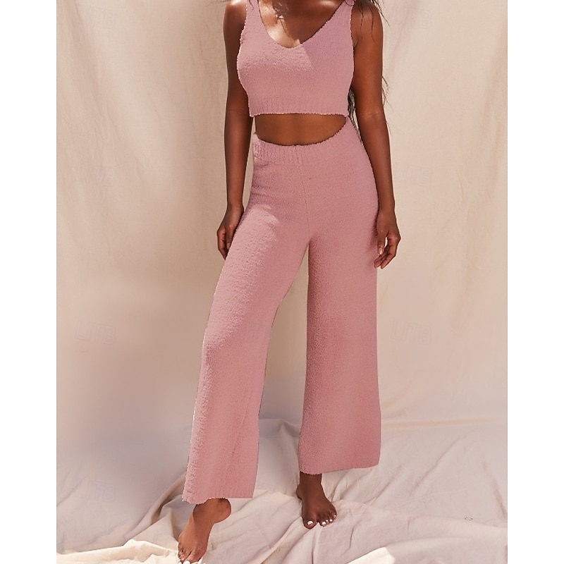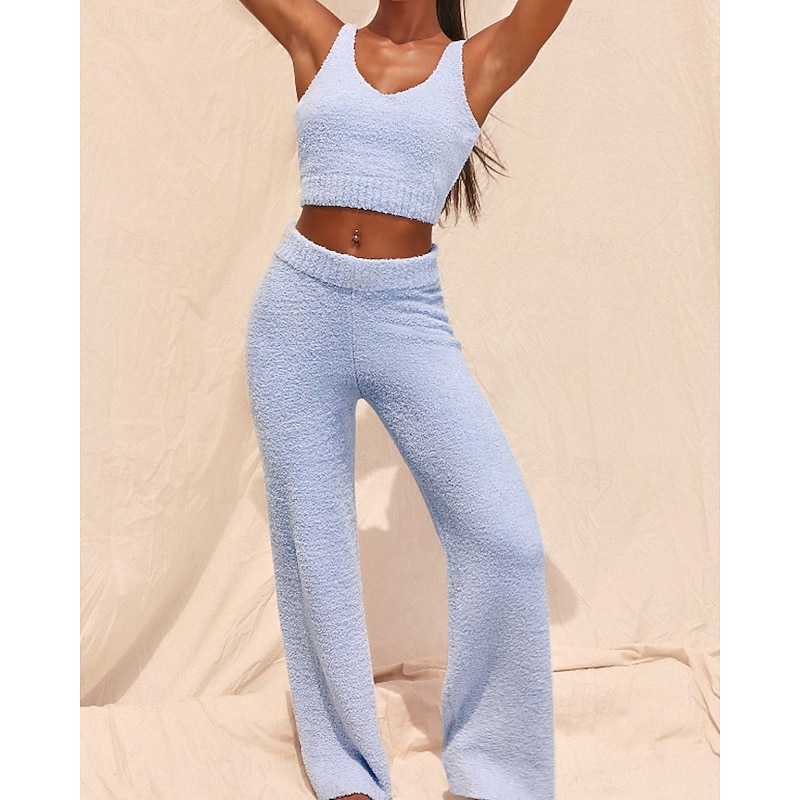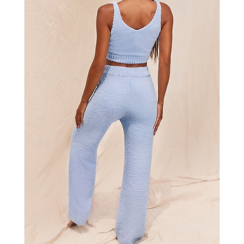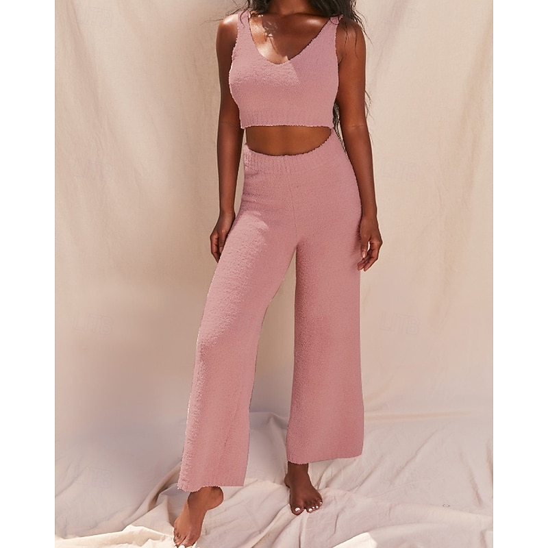 Why Choose Women's Active Streetwear Pants Sets Bolero Top Sleeveless V Neck Plain Outdoor Vacation Daily White Pink Blue Fall Regular Fit?