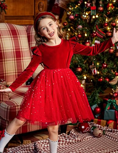 trending ! Arshiner Toddler Tutu Dresses Little Girls Velvet Tulle Fall Winter Long Sleeve Ruffle Holiday Party Dress 2-6Y