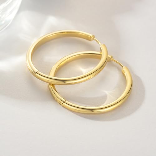 Material: 14K GoldMetal type: Yellow GoldBack Finding: Latch BackEarring design: HoopGem type: No Gemstone【Premium Construction】When you wear these gold hoop earrings 14k gold рlаtеd big hoop earrings, you're not just adorning yourself with beauty but a piece that retains value over time. The warmth of the gold hue gold hoops earrings for women seamlessly complements all skin tones, making it an exquisite accessory for every woman.【Minimalist, Round-Edge Design】Veering away from ornate or overly intricate patterns, the minimalist approach of these gold huggie earrings for women’s hoop earrings embodies sophistication and grace. The round-edge design, in particular, provides a gentle curvature, rendering the 14 karat gold hoop earrings both visually appealing and comfortable.【Exquisitet 30mm Size Dimension】Striking the right balance between ostentatious and subtle, the 30mm size of these 14k gold рlаtеd hoop earrings for women ensures they stand out without overshadowing the wearer. They're not just large gold hoop earrings; they're a statement of style and elegance.【Comfort-Focused Engineering】Beyond their aesthetic appeal, these women’s hoop earrings are designed with the wearer's comfort in mind. Lightweight and hypoallergenic, the gold hoop earrings ensure minimal strain on the earlobes even after prolonged wear. The soft, round edges makes them a safe accessory.【Universal Appeal and Versatility】The timeless design paired with up-to-date features ensures the gold hoop earrings 14k gold big hoop earrings remain a favored choice for years to come. Pair them with a casual tee or jeans – the gold hoops earrings for women’s earrings adapt and elevate every look. Perfect for everyday use. superior materials and excellent craftsmanship ensure long-lasting durability.