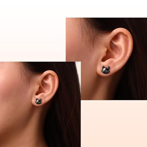 trending ! Gnoce HYYTD How To Train Your Dragon Cool Toothless Black Dragon Stud Earrings for Her, S925 Sterling Silver Stud Earrings for Women Wife, Valentine‘s Day, Mother’s Day Jewelry