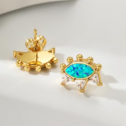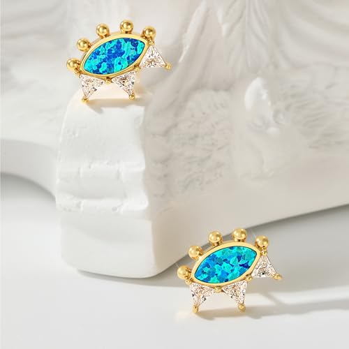 trending ! Cicy Bell Womens 18k Gold Plated Brass Stud Earrings Evil Eye Crown Trendy Cubic Zirconia Opal Dainty Flat Back Earrings Jewelry Gifts for Friends