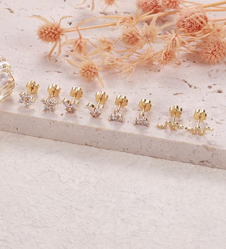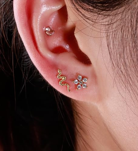 Quality Comfort SizeFlatback Stud Earrings:We have carefully prepared a variety of cartilage stud earrings, including sparkling cubic zirconia earrings, charming snake screw back stud earrings, exquisite butterfly handmade stud earrings, and elegant flower earrings. These uniquely styled handmade earrings for girls can meet your daily matching needs in various occasions, helping you easily showcase your distinctive charm and become a fashion focus.Screw Back Earrings Size:20G=0.8MM, 6.5mm Wearable Length.right size for women and girls, light weight, very comfortable and light to wear.Screw back design, the earring posts are threaded to ensure your earring backs is always securely fixed; flexible flower shape screwback design, easy to wear or take off, very comfortable, you can even wear them to sleep, exercise.Hypoallergenic Earrings For Girls:The cute stud earrings for girls are made of surgical steel and plated with 14K gold,it is an extremely friendly choice for people with sensitive ears.Suitable for various types of body piercing,cartilage earrings, helix piercing jewelry, rook, daith piercing jewelry, tragus piercing jewelry.For Her/Him:A variety of style of handmade stud earrings can not only meet your daily wear needs, but also make you in the party, graduation ceremony, birthday party, wedding and other important occasions to become a bright presence.It's also the perfect choice for your wife, lover, girlfriend or partnerAfter-Sales Service:We are ready and willing to help with anything you might need.If you have any questions about our nap earrings, please contact us at any time.We will provide you with 24-hour customer service. Perfect for everyday use. premium materials and excellent craftsmanship ensure long-lasting durability.