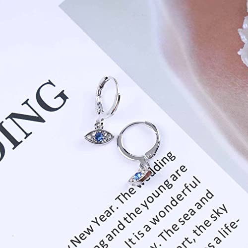 Why Choose Vintage Cz Evil Eye Dangle Earrings Silver Tiny Evil Huggie Hoop Earring Small Turkish Eye Earring Crystal Lucky Eye Charm Earrings Jewelry for Women (Silver)?