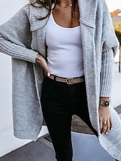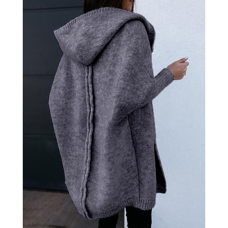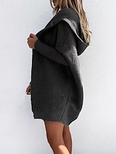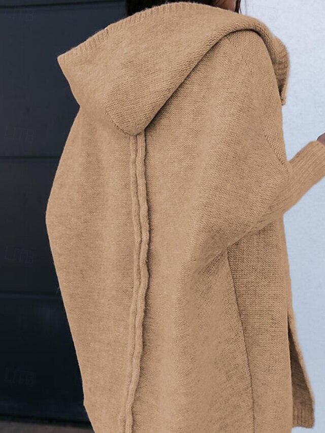 More information about Women's Sweater Cardigan Streetwear Casual Solid Color Hooded Knitted Long Sleeve Long Tops Knit Daily Holiday Weekend Black Khaki Fall Winter