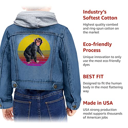 Fabric type: Denim, cotton, hooded or lapel collarCare instructions: Machine WashOrigin: Made in the USAThis Toddler Hooded Jacket turns even the plainest clothing into a look that’s cool and bang on trend. The timeless denim has been updated in vibrant colors. Monkey Lovers Gifts has functional pockets and metal detailing to complete the picture.Retro Monkey Toddler Hooded Denim Jacket is made from a cotton blend fabric and has the perfect fit that’s ‘just right.’ It’s lighter than a winter coat, so it works a treat layered over sweaters. To complete the outfit, team with jeans and leggings, and finish off with adorable boots.Cute Gifts for Kids is made of comfortable and warm materials that will not fade or stretch. You can be sure that this item will serve you for many years.Actual product color may vary from the images shown. Every monitor or mobile display has a different capability to display colors, and every individual may see these colors differently. In addition, lighting conditions at the time the photo was taken can also affect an image's color.Designed and printed in California. Perfect for everyday use. premium materials and excellent craftsmanship ensure long-lasting durability.