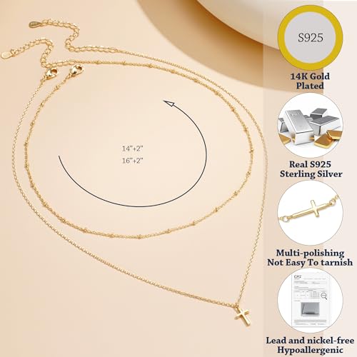 14K Gold Layered Cross Necklaces for Women,Tiny Small Sideways Cross Necklace Minimalist Christian Jewelry Gifts for Women Girls,2Pcs