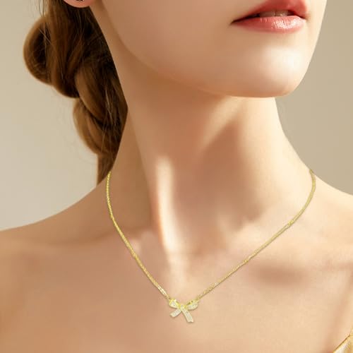 Item width: 0.2 inchesMaterial: Stainless SteelMetal type: Stainless SteelChain type: BallGem type: No Gemstone【Hottest Bow Necklace】The distinctive bow design symbolizes elegance, and a close connection between us like a ribbin. Its bow ends enhance the set's smooth design for a more elegance and simple look.it is like a work of art, showing exquisite craftsmanship and sparkling light.【Premium Material】These bowknot necklace are crafted from premium stainless and 18K gold plated, it is durable and hard-wearing. Not easy to fade.It is nickel free, lead free, and hypoallergenic.【Gold Bowknot Necklace Size】15.8'' in length, with 1.96'' extender chain, Its adjustable size makes it easy to match it perfectly, no matter the length of your neckline.【Perfect Gift】This bow necklace is sweet gift for yourself or wife,mon,her. Suitable for many occasions such as an anniversary, Mother's Day, graduation season,Christmas,Birthday,engagement, Valentine's Day,Thanksgiving,or a wedding.【Fashion Bow accessory】Whether worn alone or mixed with other necklaces, this bowtie necklace will add a touch of unique glamour to your overall look. Perfect for everyday use. High quality materials and excellent craftsmanship ensure long-lasting durability.