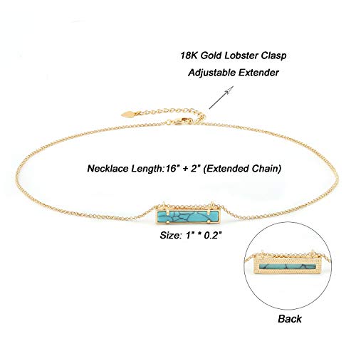 SOFYBJA 18k Gold Chain Choker Dainty Turquoise Beads Bar Necklace for Women Handmade Gemstone Jewelry for Mother's Day