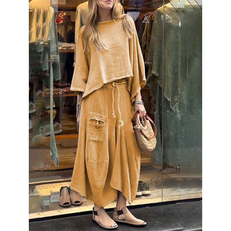 $44.99 - Women's Elegant Fashion Basic Pants Sets Long Sleeve Round Neck Solid Color Outdoor Work Casual Black White Yellow Summer Regular Fit 2025. Shop for cheap Sets online? Buy at lightinthebox.com on sale today!