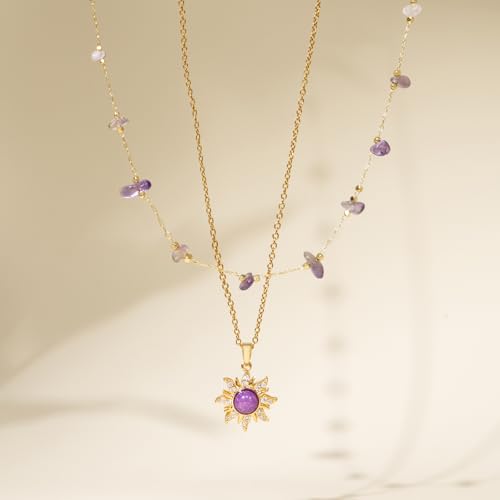 Material: BrassMetal type: BrassClasp type: LobsterGem type: StoneSun Necklace for Women - Illuminate your look with our stunning sun necklace gold for women. This beautifully crafted piece captures the warmth and energy of the sun, adding a touch of natural brilliance to any outfit, Suitable for movie fans cosplay costumes and everyday wear.Rapunzel Sun Necklace - Channel the spirit of adventure with our enchanting Rapunzel sun necklace. This design, inspired by a beloved tale, is a must-have piece of princess jewelry that lets you carry a piece of fairy-tale magic with you wherever you go.Gold Sun Necklace - Crafted with a lustrous finish, this gold sun necklace offers a classic and sophisticated look. The delicate sun pendant necklace sits gracefully, creating a focal point of positive energy and light that complements your natural beauty.Tangled Jewelry & Necklace - The good gift for any fan, this Tangled necklace is a cherished piece of Tangled jewelry. Itβs more than an accessory; itβs a symbol of hope, adventure, and dreams, making the sun necklace gold an unforgettable Rapunzel gift for loved ones.Purple Healing Crystal Necklace - Discover the unique beauty of our purple necklaces for women. Featuring a captivating healing crystal necklace design, this piece combines a regal color with a sense of serene positivity, promoting a feeling of balance and calm. Perfect for everyday use. superior materials and excellent craftsmanship ensure long-lasting durability.