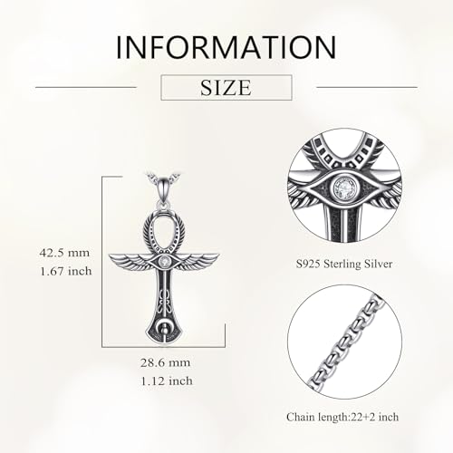 Material: Sterling SilverMetal type: Sterling SilverGem type: No GemstoneDESIGN: Ankh, known as the Key of Life, symbolizes life and immortality. A powerful emblem of strength, spirituality, and the timeless pursuit of understanding life's mysteries. Wearing this ankh necklace gives us strength and protection.SIZE: The ankh cross pendant measures 1.4*1.12 inches, chain length: 22+2 inches, lightweight necklace fit for men. It can adapt to various clothing and occasions, adding charm and unique temperament to you.MATERIAL: The ankh necklace for women is made of 925 sterling silver, will not appear dull after a long time wearing. It is no harm to sensitive skins and ideal for long-term wear.GIFT IDEAS: The egyptian ankh jewelry comes with a exquisitely presented gift box, perfect gift for lover, best friends, families on birthdays, graduation, Mother's Day, anniversary, Valentine's Day, Thanksgiving, Christmas or any special occasions.SERVICE: We provide reliable and service. If you have any issues, contact us, and we'll reply within 24 hours. Perfect for everyday use. superior materials and excellent craftsmanship ensure long-lasting durability.