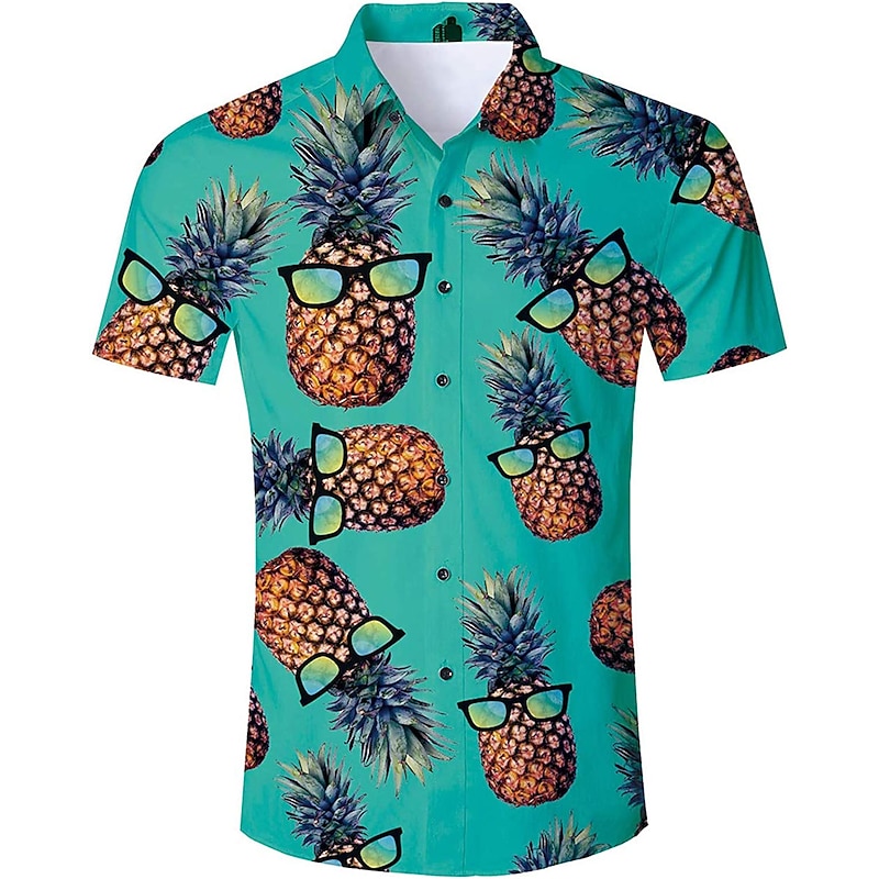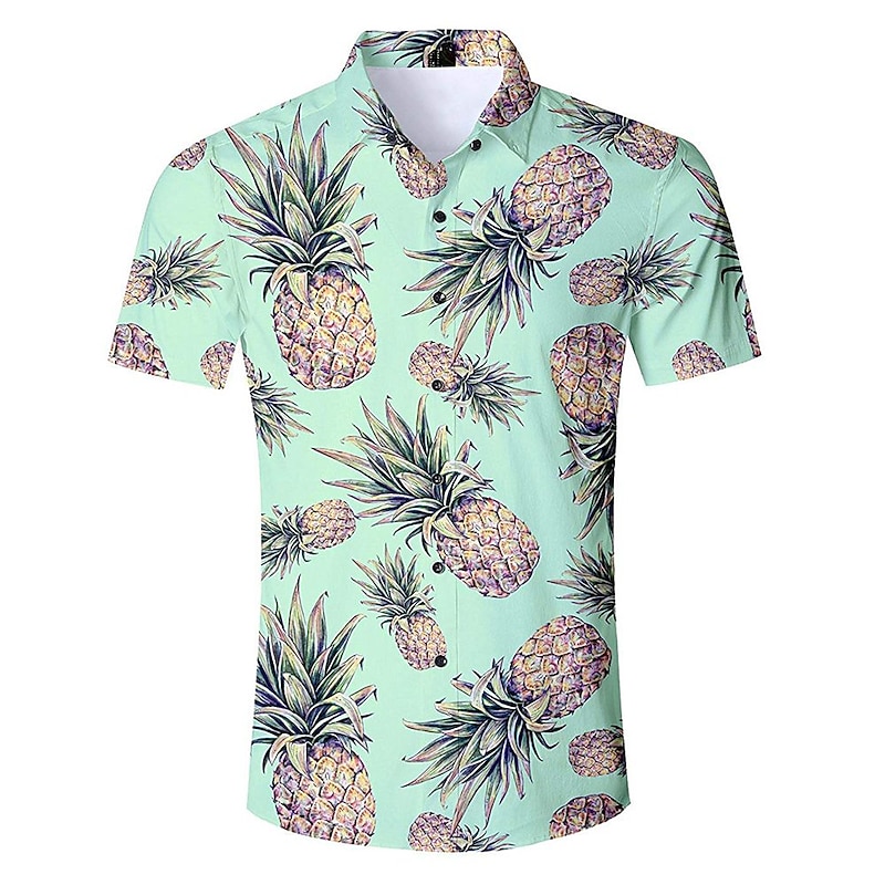 trending ! Men's Fruit Pineapple Shirt Summer Hawaiian Shirt Aloha Shirt Short Sleeves Shirt Turndown Tropical Hawaiian Designer Outdoor Street Casual Green / Black White Pink 3D Print S M L