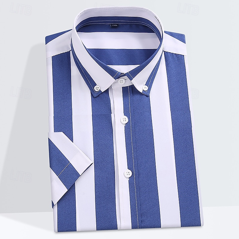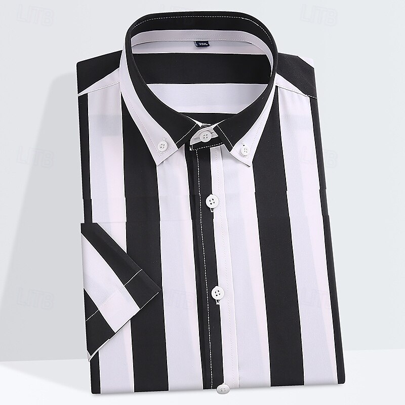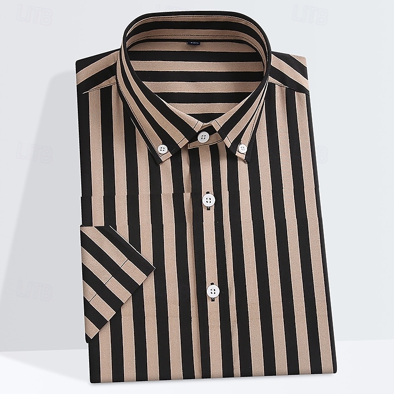 trending ! Men's Shirt Dress Shirt Button Down Shirt Non Iron Shirt Striped Corporate Clothing Thanksgiving Dark Yellow Black White Yellow Short Sleeve Lapel every Seasons Clothing Apparel Print