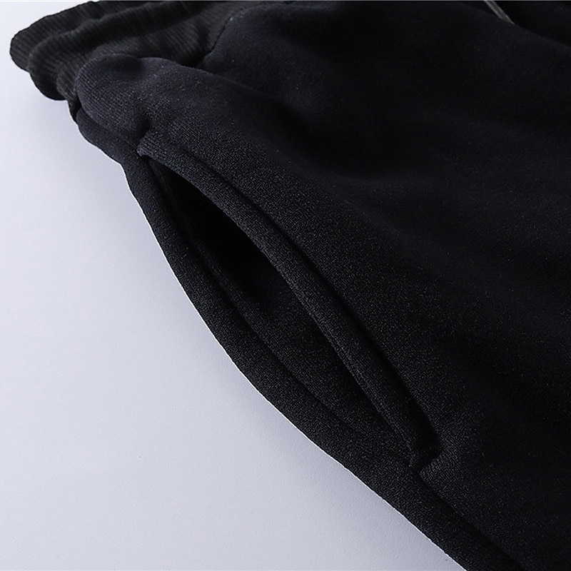 : The sweatpants feature a regular fit with a sleek, straight-leg design. They include a mid-waist elastic waistband with an adjustable drawstring for a personalized and secure fit, enhancing both style and flexibility.
