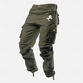 Highlights [Fabric] : Crafted from 100% cotton, these men's cargo pants offer a sturdy yet breathable material with micro-elastic properties. This makes them ideal for both comfort and durability in various outdoor conditions. [Fit Type] : The pants feature a regular fit, providing a relaxed feel with a tapered leg for a modern silhouette. The mid-waist design ensures a comfortable wear suitable for various body types. [Design Highlights] : These cargo trousers boast a classic western style with multiple large pockets for practicality, featuring button closures for secure storage of essentials. The embroidered animal graphic with a horse motif adds a distinctive accent. Drawstring cuffs provide an adjustable fit, catering to your activity needs. [Occasions] : Perfect for outdoor sports, casual outings, and camping or hiking adventures. These pants are designed to combine functionality with style, making them a versatile choice for both active and leisure activities across spring, summer, and autumn. [Size Range] : Available in a range of sizes: 30, 32, 34, 36, and 38. The color options include yellow, army green, and grey, allowing for personal style preferences. Perfect for everyday use. premium materials and excellent craftsmanship ensure long-lasting durability.