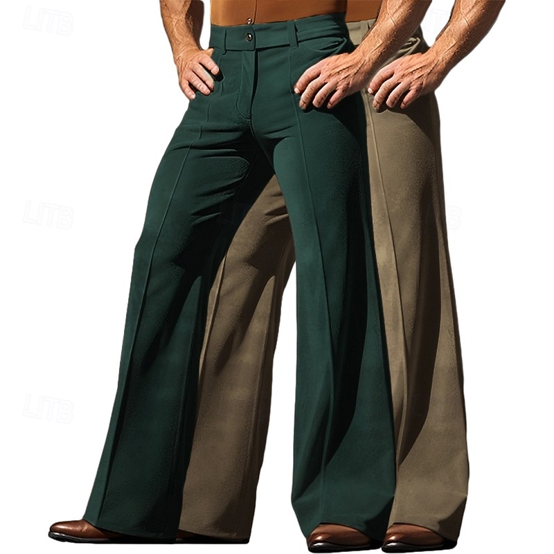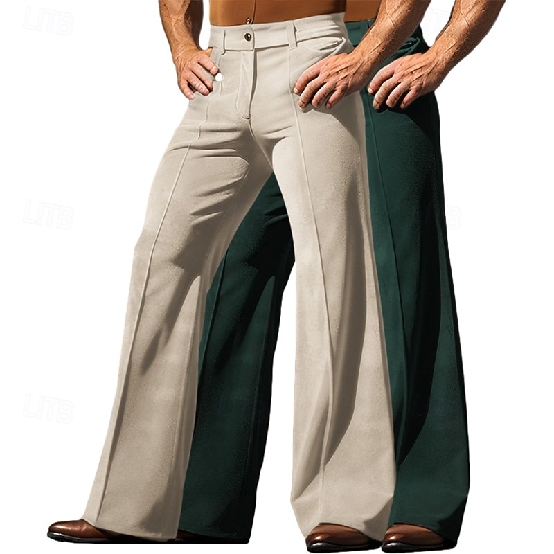 Why Choose Men's Trousers Dress Pants Bell Bottom Flared Pants Velvet Pants Pocket Plain Comfort Breathable Full Length Outdoor Daily Going out Fashion Ethnic Style beige+khaki Green+Khaki Micro-elastic?