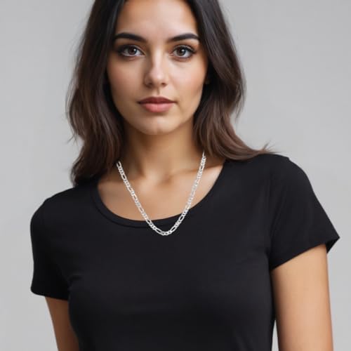7mm Italian 925 Sterling Silver Diamond Cut Figaro Chain Necklace for Men & Women - with Lobster Claw Clasp Heavy Weight Silver Jewelry Gifts for Him Her 20''(24gm), 22" (26.3gm), 24"(28.4gm) & 26"(30.6gm)