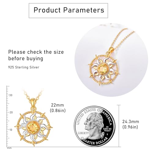 Material: Sterling SilverMetal type: Sterling SilverChain type: OmegaGem type: Cubic ZirconiaDesign:Representing vitality, energy, and life-giving power, the sun is often associated with warmth, positivity, and renewalMaterial:Sterling silver sun necklace gold are made of 925 sterling silver gold plating and zircon.Suitable for Long Time WearingSize:Sun pendant necklace size is 0.86 inch or 22 mm.Sterling silver chain length is 18+2 inch extension chainSun Jewelry:Celestial necklace comes in an exquisite jewelry gift box with silver polishing clothGifts:The sun necklace silve is a versatile accessory that adds a touch of brightness and optimism to any outfit, making it suitable for both everyday wear and special occasions. It's an ideal choice for those who appreciate celestial themes and wish to carry a reminder of light and inspiration Perfect for everyday use. superior materials and excellent craftsmanship ensure long-lasting durability.