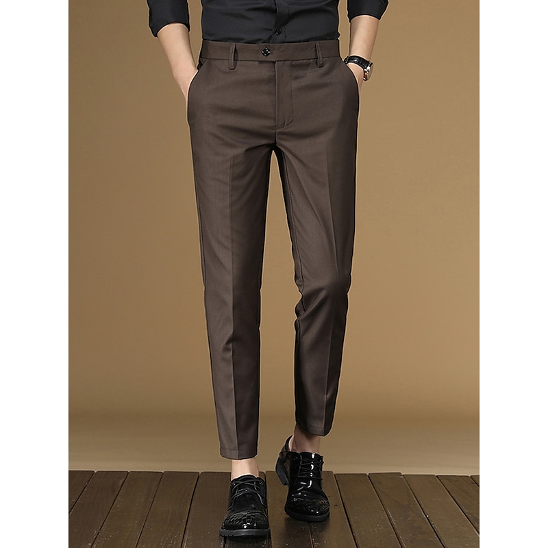 Men's Dress Pants Tapered pants Trousers Suit Pants Pocket Plain Anti-wrinkle Breathable Ankle-Length Wedding Business Casual Fashion Formal Skinny Black Pink Micro-elastic