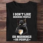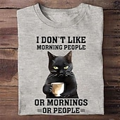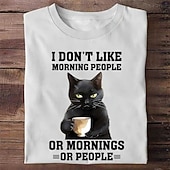 Highlights [Fabric] : Crafted from 100% cotton, this T-shirt offers excellent breathability and softness. The natural material ensures comfort, making it ideal for spring and summer wear while maintaining durability. [Fit] : The T-shirt features a regular fit, providing a relaxed and loose silhouette suitable for a wide range of body types. The timeless crew neck and short sleeves add to its timeless and casual style, perfect for everyday wear. [Design Highlights] : The shirt showcases a humorous graphic of a black cat holding a coffee cup on the front, paired with the playful text: I DONβT LIKE MORNING PEOPLE OR MORNINGS OR PEOPLE. This quirky design injects a sense of humor and personality into the shirt, making it a standout piece. [Occasions] : Ideal for a variety of casual settings, from streetwear and sports outings to relaxed weekend gatherings. Whether you're heading to the park or meeting friends for coffee, this T-shirt adds a touch of fun wherever you go. [Size Range] : Available in sizes S, M, L, XL, and XXL, catering to a diverse group of adults with different body shapes and preferences. The T-shirt is offered in a variety of colors, including white, black, army green, and heather gray. Perfect for everyday use. premium materials and excellent craftsmanship ensure long-lasting durability.