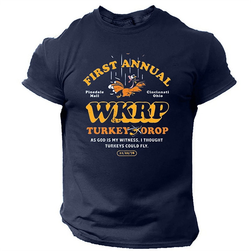 Why Choose Men's WKRP Turkey Drop T-Shirt - First Annual Funny Retro TV Show Graphic Tee with "As God Is My Witness" Quote?