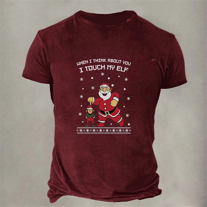 This Christmas Men's Santa Claus funny christmas T Shirt Cotton Short Sleeve Graphic Shirt Black Red Burgundy plush Tee Sports Outdoor Holiday Fashion Designer Clothing combines elegant design with practical functionality. Every detail has been carefully considered to ensure you get the best possible experience. The top-grade construction means this product will serve you well for years to come.